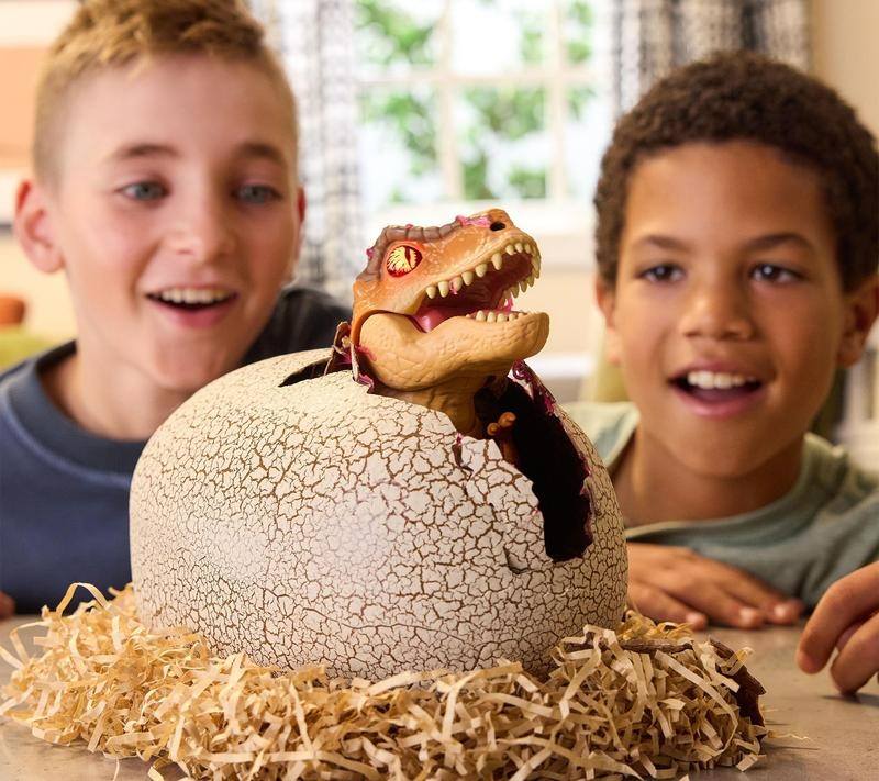 Bring your dino to life as you watch it hatch for the very first time. This dino toy lets you watch your baby T-Rex hatch, andthen decide whether it grows into a friend, or a fierce predator. With articulated features, more than 100 sounds and reactionsand interactive play modes, the Primal Hatch T-Rex is bound to keep Jurassic Park fans entertained for hours.